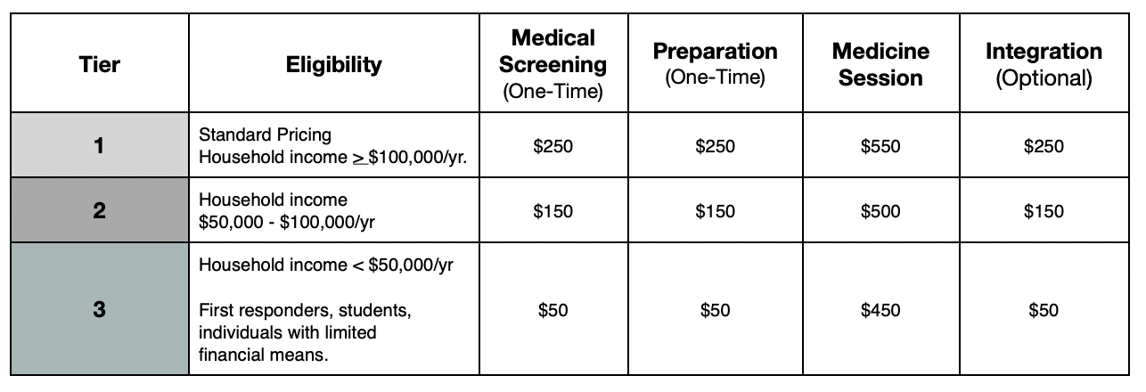 I believe that everyone who can benefit from ketamine treatment should have the opportunity to receive it. To help make this care more accessible, I offer a three-tiered pricing structure. This system allows patients to choose the rate that best matches their financial situation.